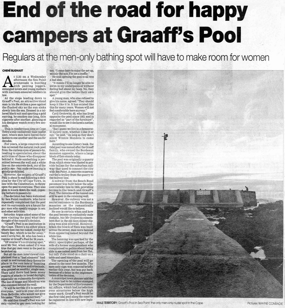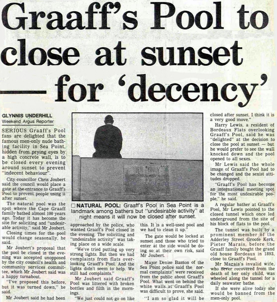 He said: "We can now make an end to the abuse of Graaff's Pool."