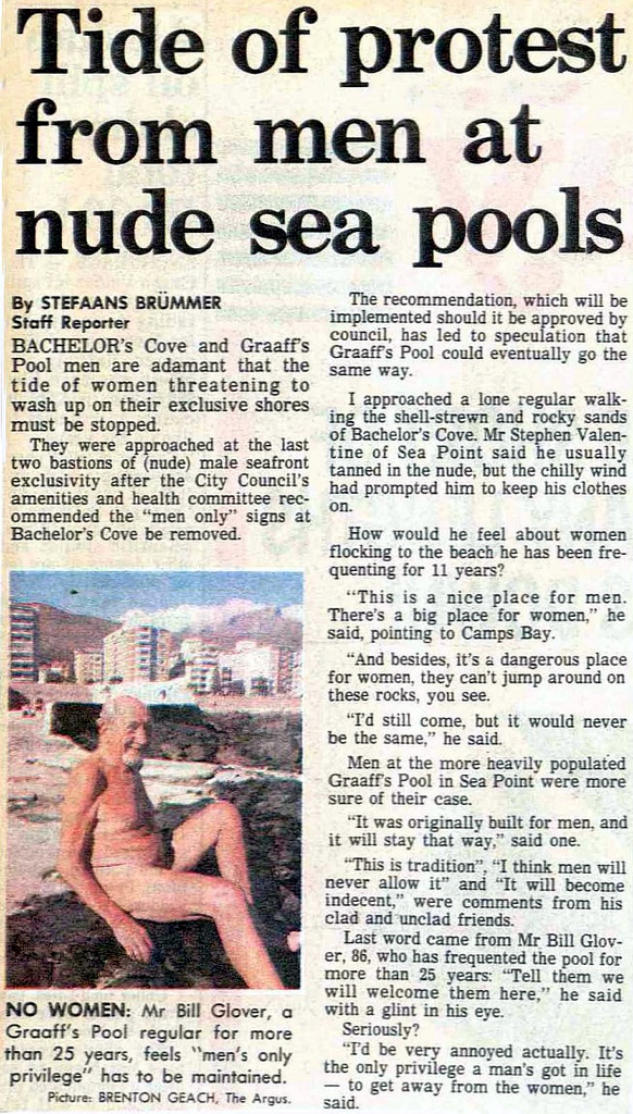 Graaf's pool has a unique place in the story of the South African tidal pool for all the fuss it has caused. The pool was built in 1910 to accommodate the needs of a paralysed woman who lived in a mansion right behind the pool. It featured a tunnel for access under the beach road, and a wall to shield the users from view. After her, the mansion and the pool were owned by a politician named Graaff, after whom the pool was named, and who later bequeathed the pool to the City of Cape Town.