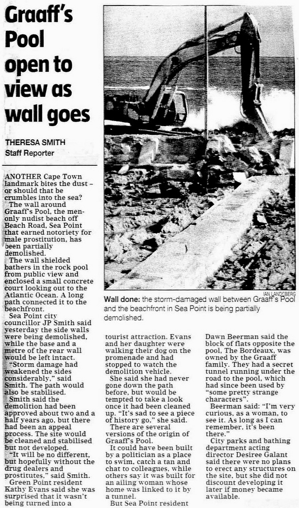 Cape Town - Nudie landmark Graaff's Pool - labelled by a city councillor as a venue where sex was for sale, drugs were peddled and the area used as a toilet - is almost gone.