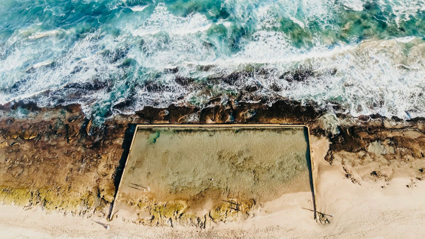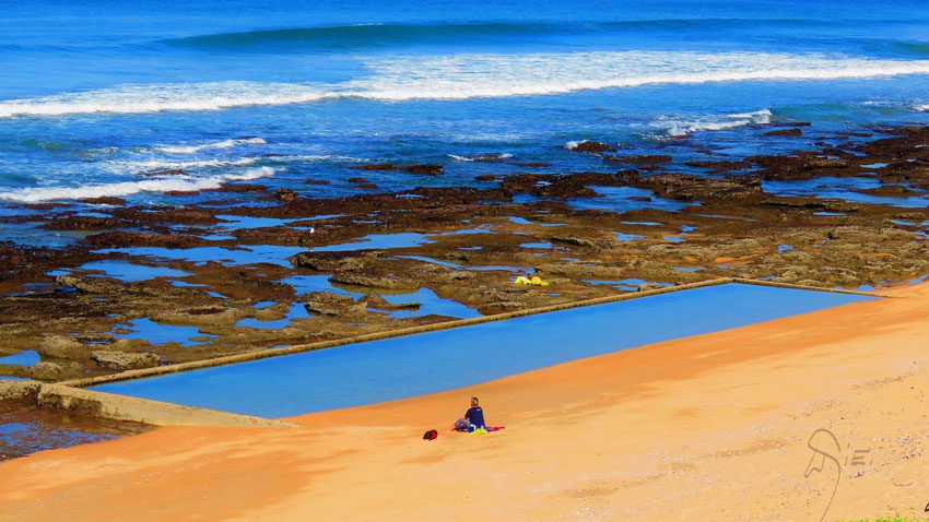 A natural tidal pool that provides a swimming space, as the beach is prone to strong currents and rip tides.