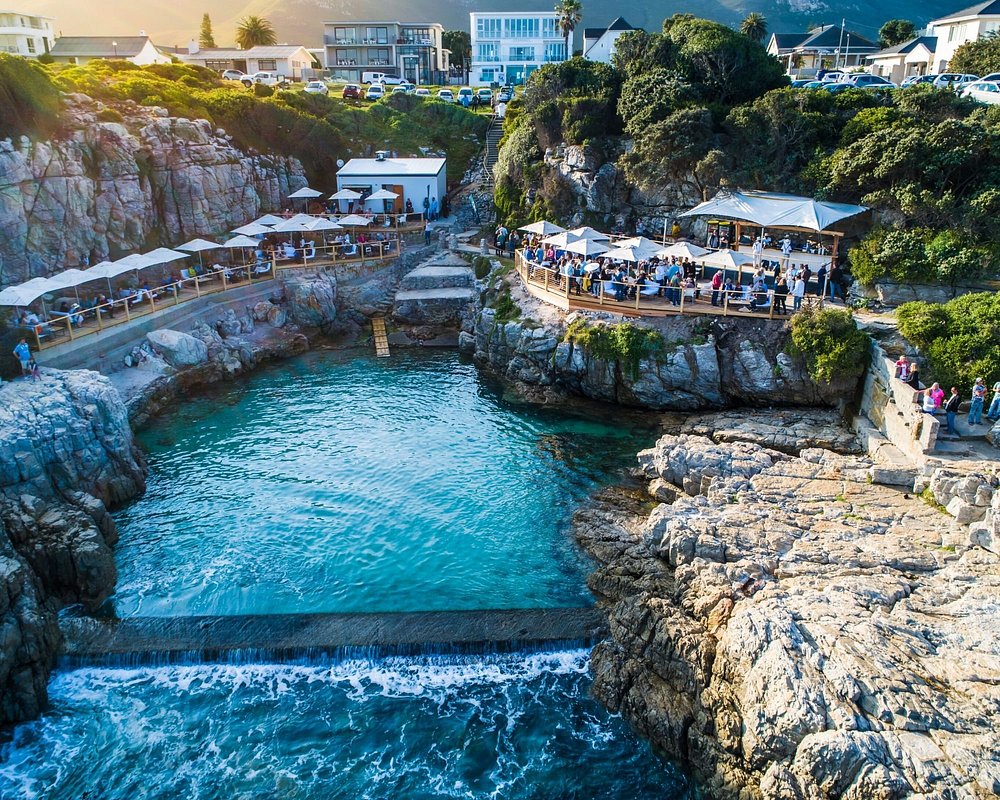 The tidal pool is situated at the foot of the cliffs in Central Hermanus, right in front of the hotel.