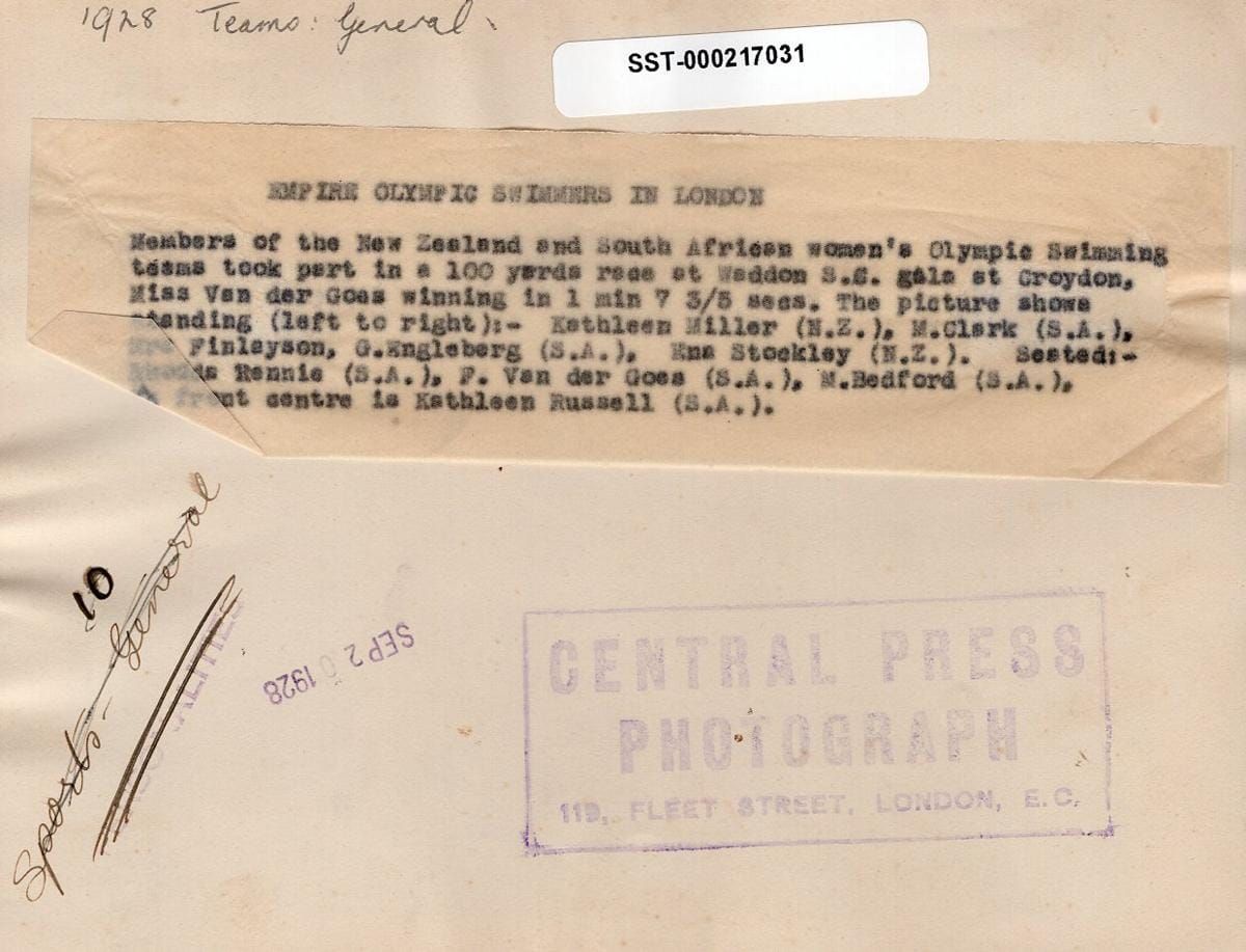 In 1928 five South African female swimmers travelled to the Olympic Games in Amsterdam, accompanied by coach Rachael Finlayson. The won a bronze medal for finishing third in the 4x100m freestyle relay. This was the first Olympic swimming medal won by South African swimmers.