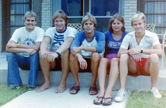 Rhodesian swimmers and divers in Dallas Texas in 1979. l to r. Guy Goosen, Dave Parrington, Dave Lowe, Debbie Hill, Kris Hammond (who dived for Rhodesia at the 1976 South African Championships in Durban, when he was an exchange student from the US attending Oriel).