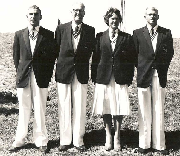 1960 Olympic South African Swimming team - Tich Mclachlan, manager Alex Bulley, Laura Ranwell and Aubrey Burer.