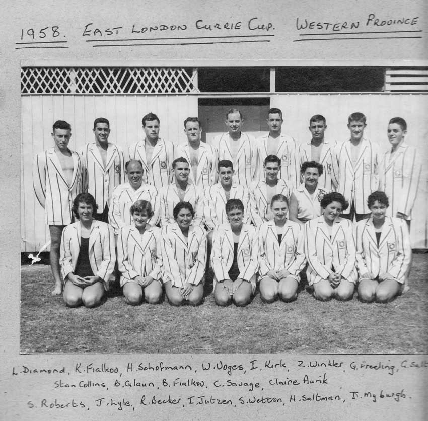 Intervarsity in 1957 in Bloemfontein and 1958 in Cape Town in Cape Town and won the backstroke and was in the SA Universities Team ( don’t think we swam against anyone !!), and was part of the UCT Team to tour Rhodesia at the end of ‘58 (So was Jeanette Myburg, Sue Roberts and Sylvia Wetton)
