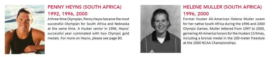 At Nebraska she lettered from 1997 to 2000, garnering All-America honors for the Huskers 15 times, including a bronze medal in the 200-meter freestyle at the 2000 NCAA Championships.