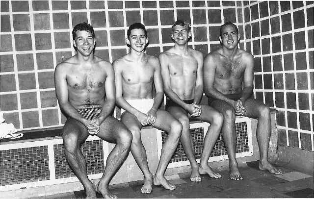 Billy Steuart, Anthony Briscoe, Aubrey Burer and Peter Duncan at the Summit Club indoor pool in Hillbrow.