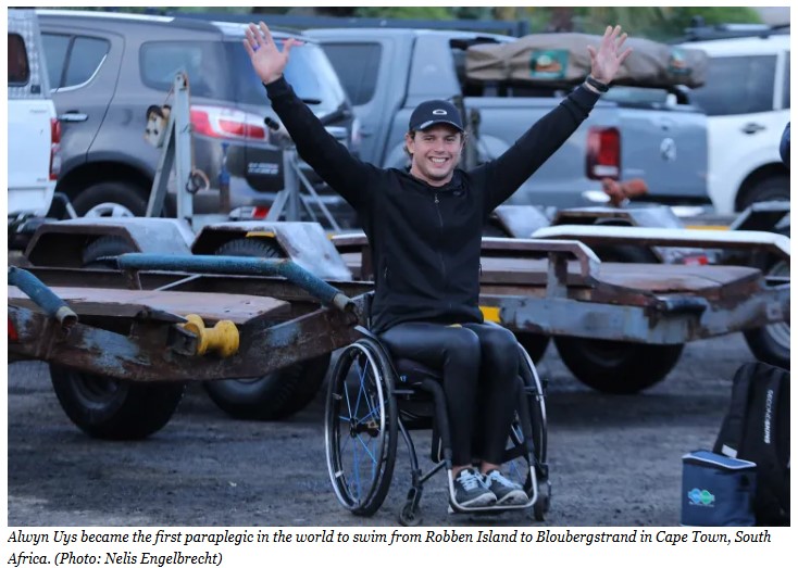 Alwyn Uys has become the first paraplegic swimmer to complete the swim from Robben Island to Blouberg Beach; this is his inspiring story!