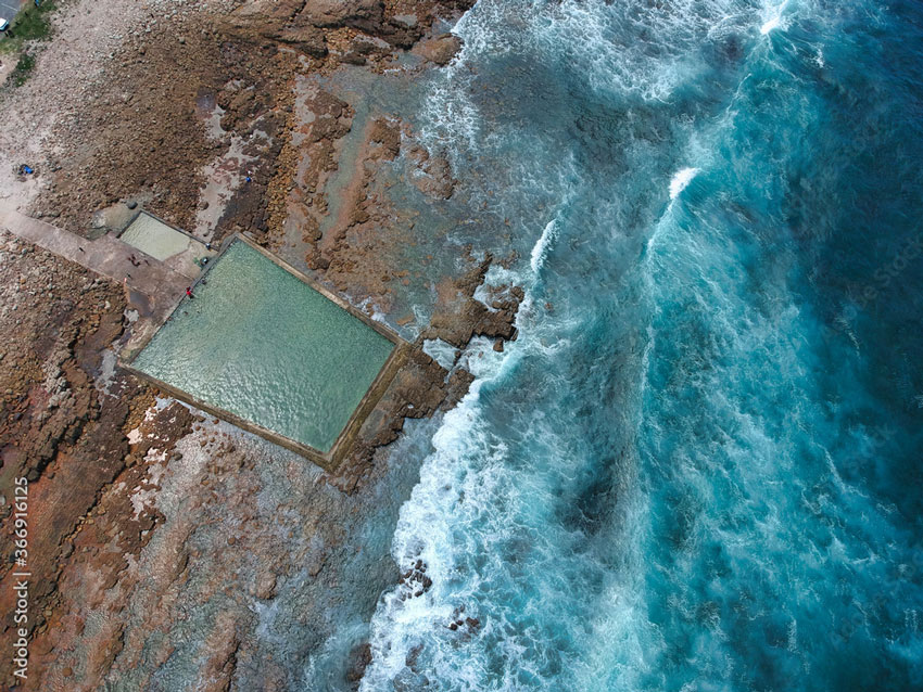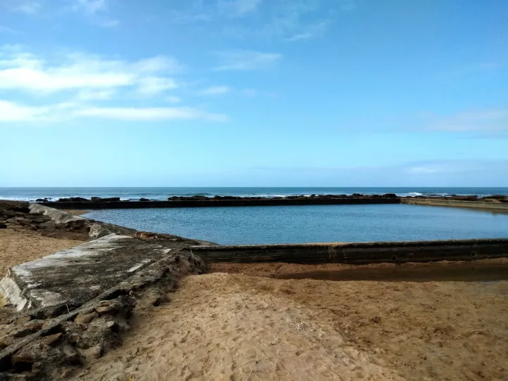 A natural tidal pool that provides a swimming space, as the beach is prone to strong currents and rip tides.
