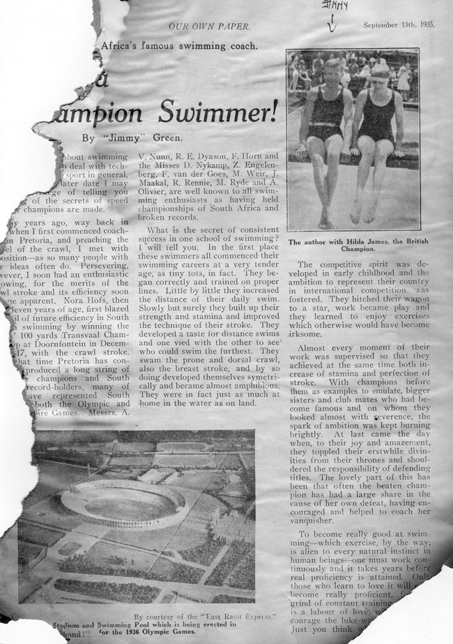 Hilda James was a famous English swimmer who toured South Africa in the 1920s. Read more about Hilda here